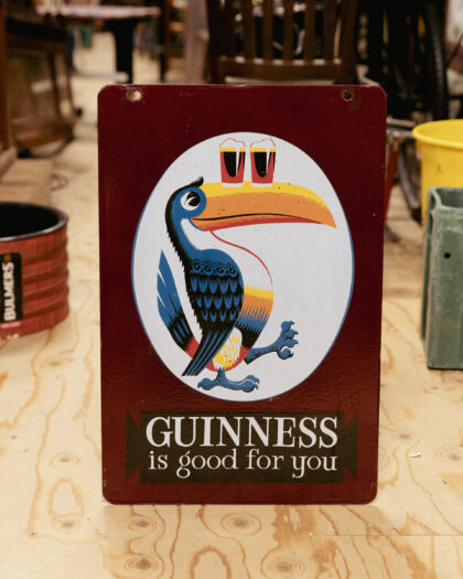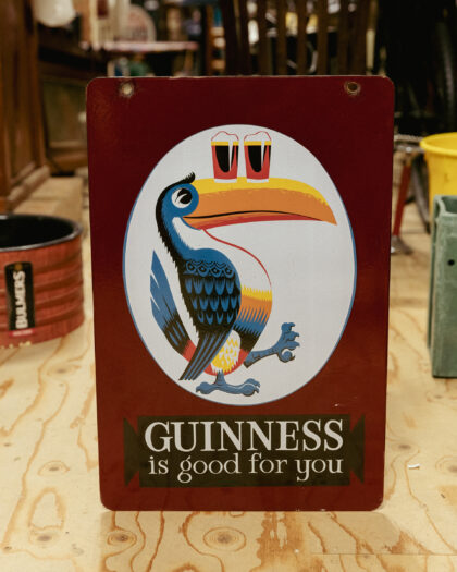 A double-sided enamel advertising sign for Guinness.