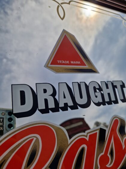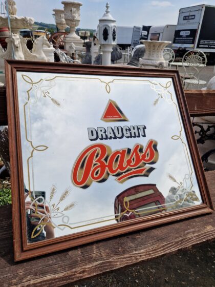 A vintage pub mirror for Draught Bass ale.