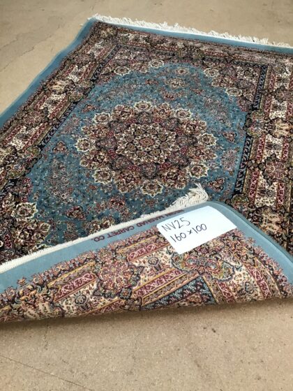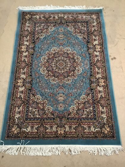 Duck-egg blue ground, fine woven Iranian rug. Full pile with a Lozenge medallion design.