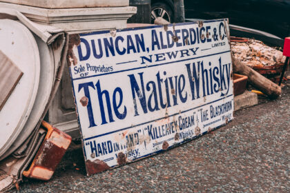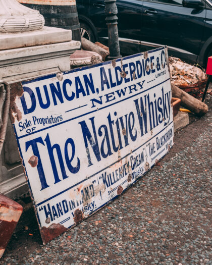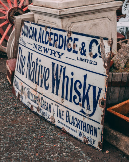 An extremely rare enamel sign for Duncan Alderdice Irish Newry Whiskey.