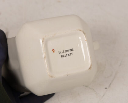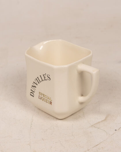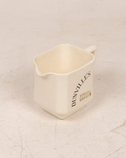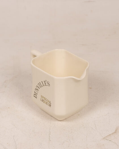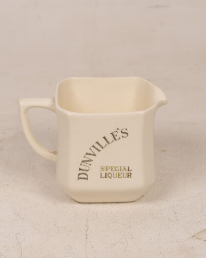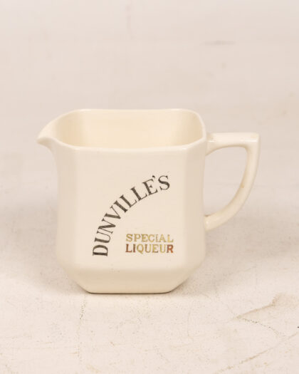 A vintage Dunville's Special Liqueur ceramic jug manufactured by W.J. Irvine Belfast. This small jug features an octagonal shape, a small handle, and a pouring spout. The front is printed with 'Dunville's Special Liqueur'. The base has the W.J. Irvine Belfast stamp. In excellent condition, this piece is ideal for collectors of Irish breweriana or vintage barware. A unique addition to any collection.