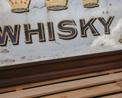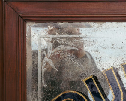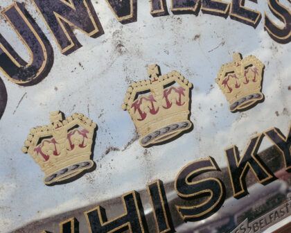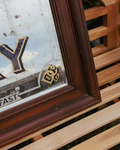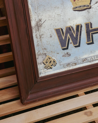 A large, original, framed advertising mirror for Dunville's Irish Whisky Belfast. Features bevelled edge, gilding and etching.