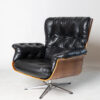 We are delighted to offer this pristine vintage black leather and walnut lounge chair.