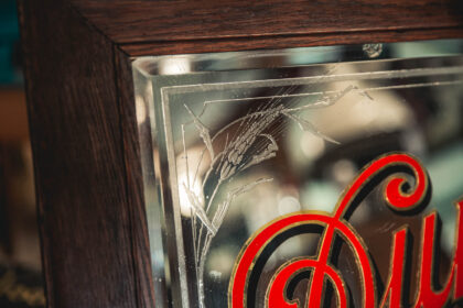 Rare Early 20th Century Dunvilles Whisky pub mirror. The mirror has 'Dunvilles Whisky' 'AWARDED 20 PRIZE MEDALS.' etched onto it.