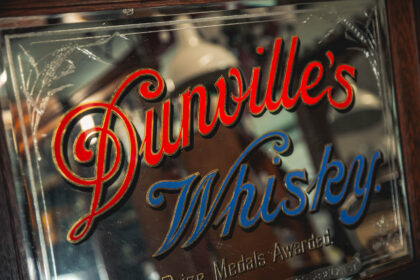 Dunville’s was the main brand name of Dunville & Co, and used in advertisements, on pub windows and pub mirrors and on whisky dispensers, water jugs, trays, match strikers, ash trays and playing cards. Dunville & Co established and based in Ireland, before the Partition of Ireland.
