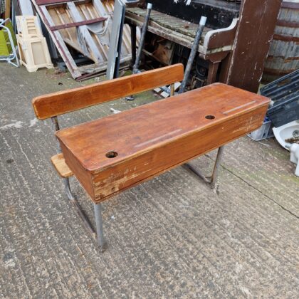 Each desk is cosmetically unique with the years of built up by young students over the decades.