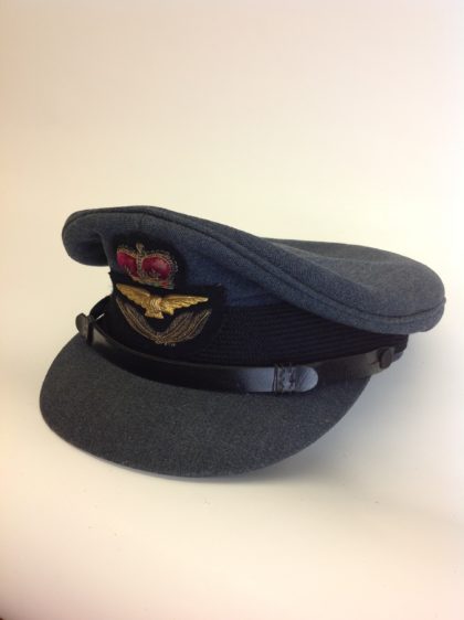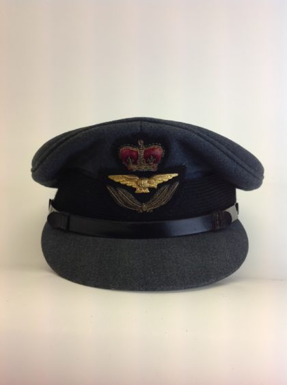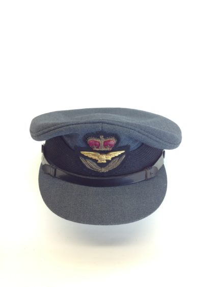 Good condition flight officer's cap, narrow chin strap in good condition and deep leather sweatband to the interior.