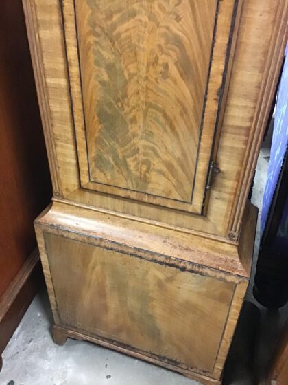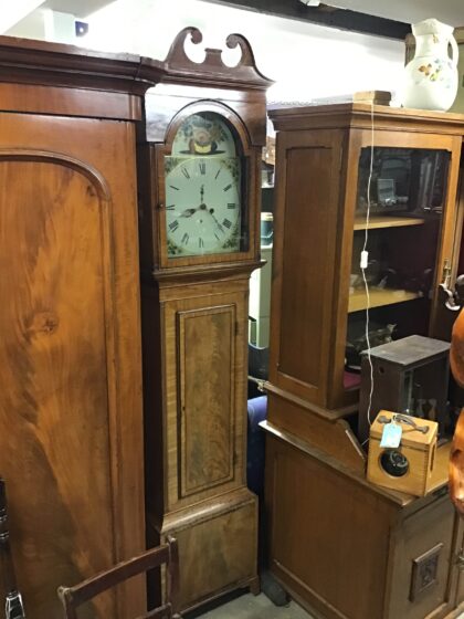 Very handsome longcase clock in a caramel-coloured case, with a nice bright painted face.