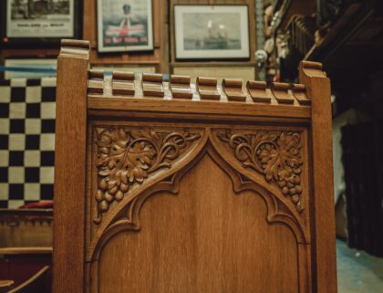 Ecclesiastical Arm Chair With Embossed Grape Vine Pattern