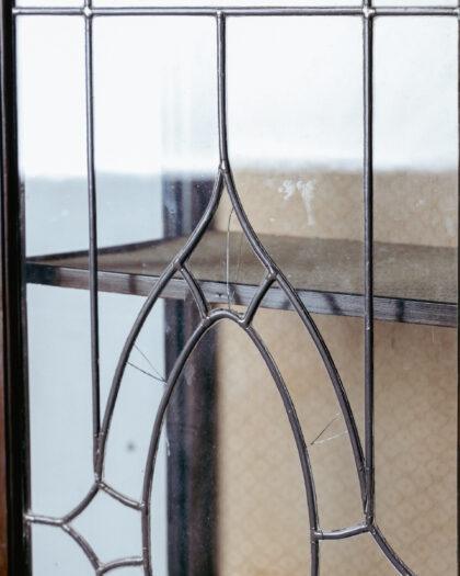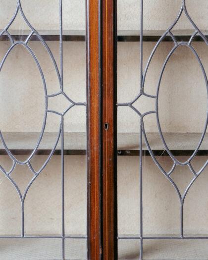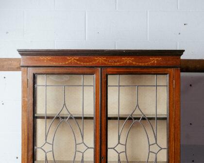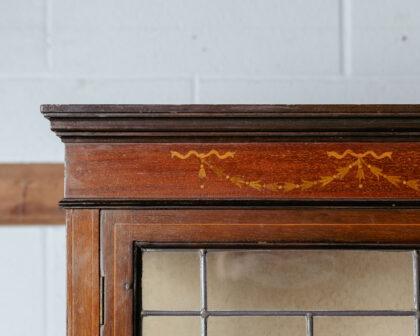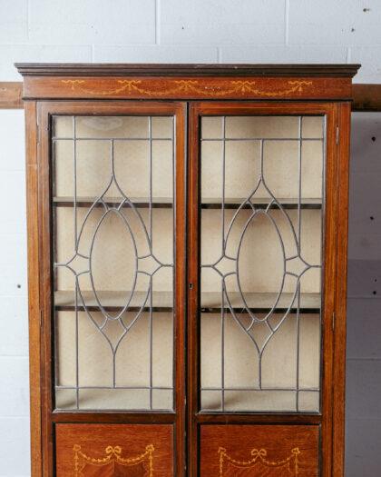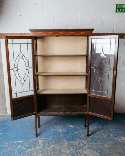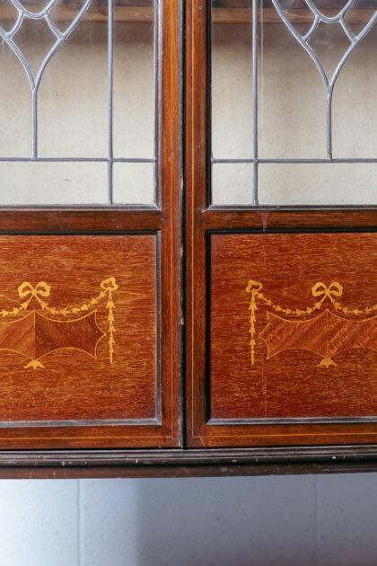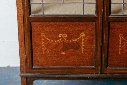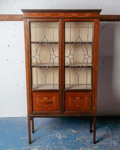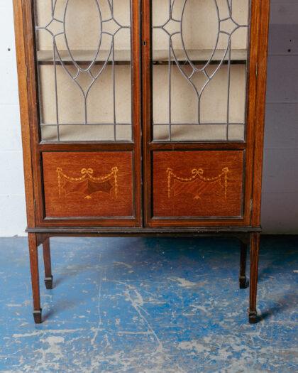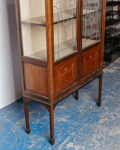 This elegant Edwardian display cabinet is a stunning addition to any home, showcasing intricate inlaid wood craftsmanship.