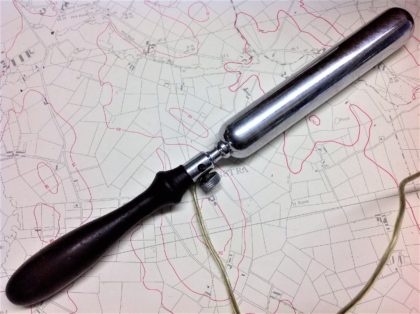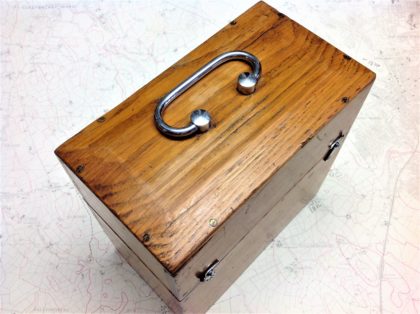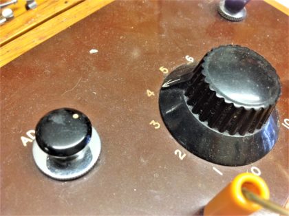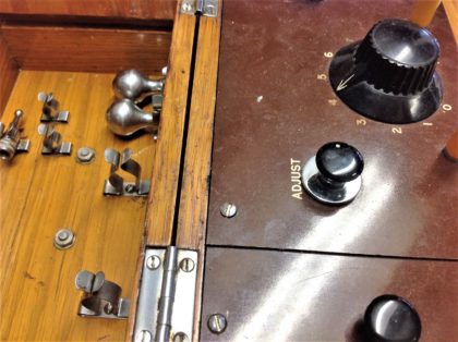Oak-cased electric shock therapy device that has been restored with modern batteries to function as originally intended.