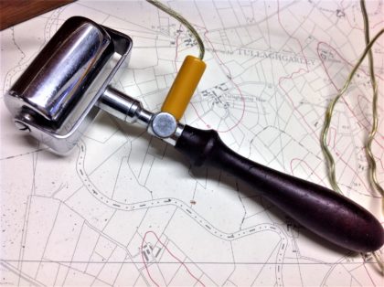 The device opens up to reveal a variety of shaped probes and a roller that would have been used to effect benefits on various parts of the patient.