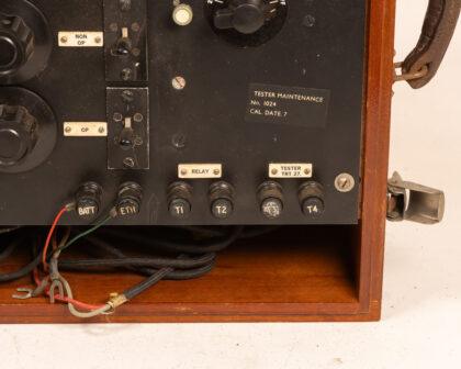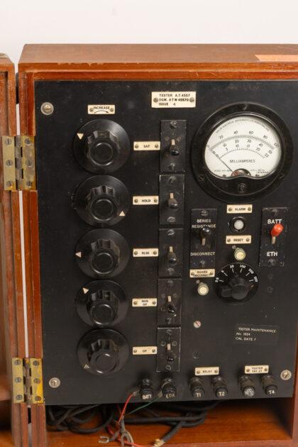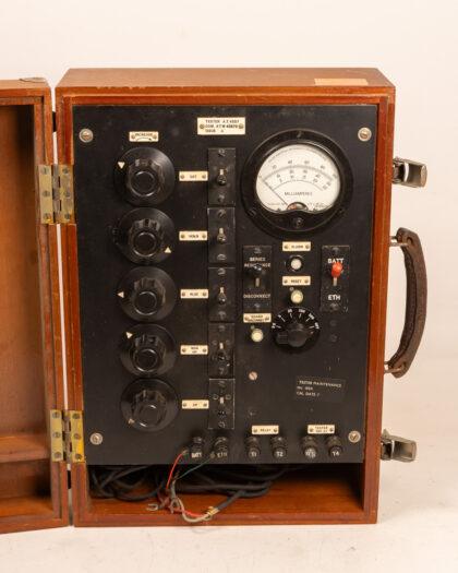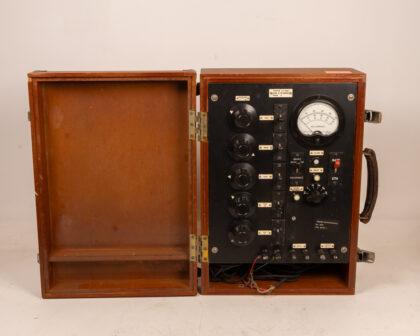 Vintage Electrical Tester A.T.4557 in wooden case. Untested. Collectible piece with knobs, switches, and Milliamperes meter. Great display item.