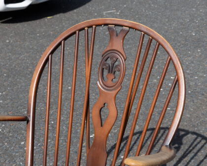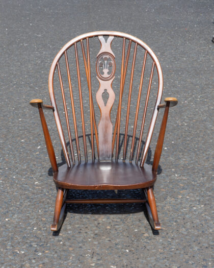 Sit back in style in this solid wood, large-back Ercol rocking chair.