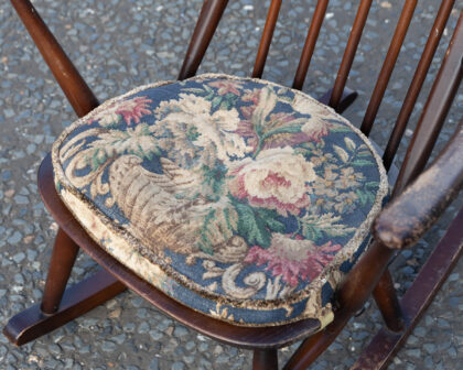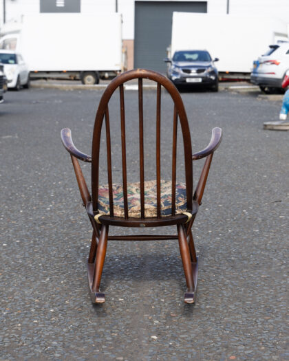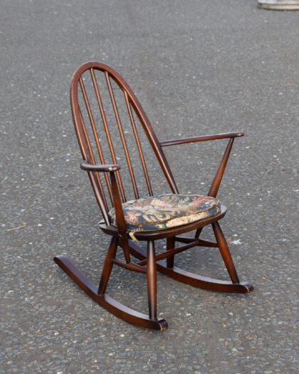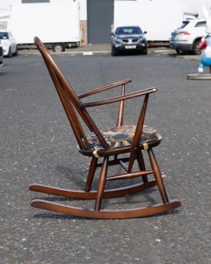 Ercol vintage rocking chair, comes with a floral seat cushion for maximum comfort.