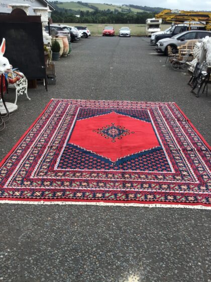 A stunning huge carpet - rich red ground full pile, fine hand-woven Moroccan carpet with diamond medallion design.