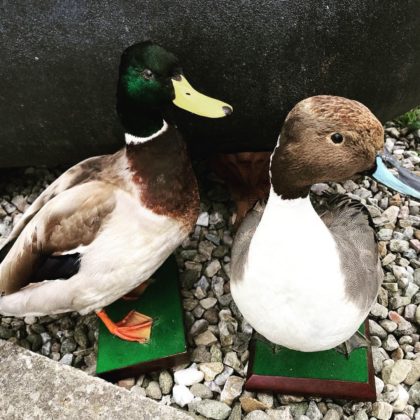 (The one with the green head is Mallard; the one with pointed tail is Pintail)