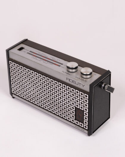 Vintage Fidelity RAD 24 transistor radio in silver and black. Good condition. Perfect for a collector or retro enthusiast.