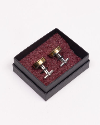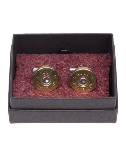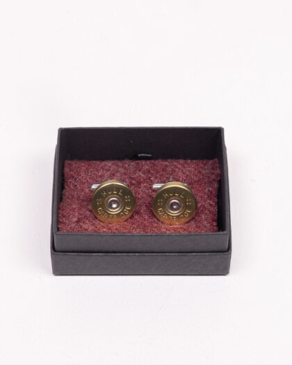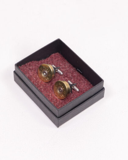 These Fine Feathers cufflinks are made from repurposed shotgun cartridges and are presented in a gift box. They feature a silver plated backing, adding a touch of elegance to the rustic design. The cufflinks are a stylish and unique accessory for the discerning gentleman, perfect for adding a touch of personality to any outfit. Perfect for gun enthusiasts.