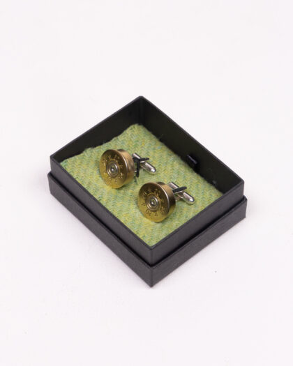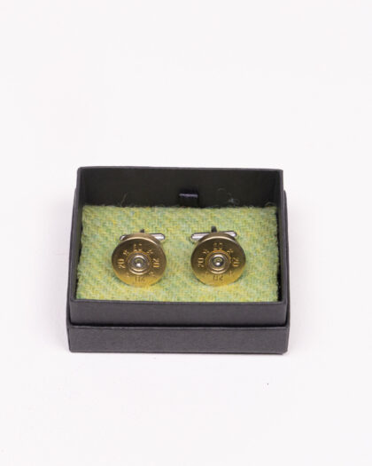These brand new cufflinks from Fine Feathers are crafted from authentic 20 gauge shotgun shells, giving them a unique and rugged appeal. The gold-tone finish of the shell contrasts nicely with the silver-tone cufflink backings. Each set of cufflinks comes in a smart black presentation box, complete with a green tweed fabric lining. These cufflinks make a thoughtful gift for anyone who appreciates shooting, hunting, or distinctive accessories.