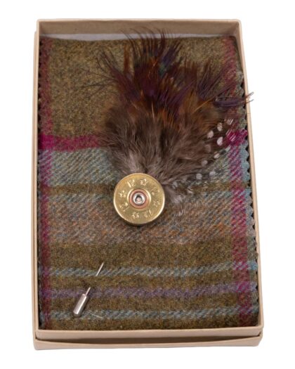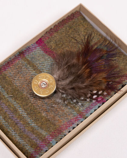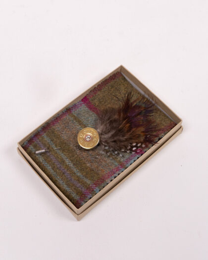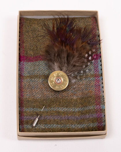 This brand new lapel pin from Fine Feathers features a shotgun cartridge design, adorned with a stylish feather. It’s an ideal accessory for adding a touch of character to any outfit. The pin is presented in a box, making it perfect for gifting. Ideal for those who enjoy country pursuits or appreciate unique and stylish accessories.
