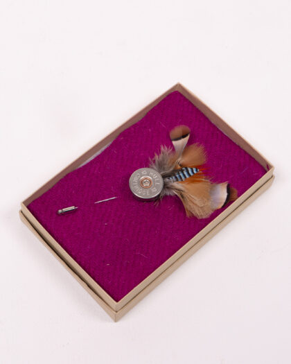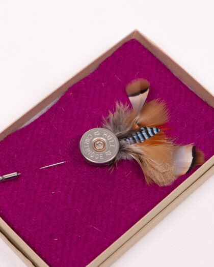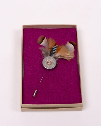 The Fine Feathers shotgun cartridge lapel pin presents a unique blend of rustic and refined aesthetics. This brand-new pin features a shotgun cartridge, accentuated with real feathers for a distinctive touch. Ideal for adding a touch of personality to your jacket, bag or home decor. A gift for the hard to buy for!