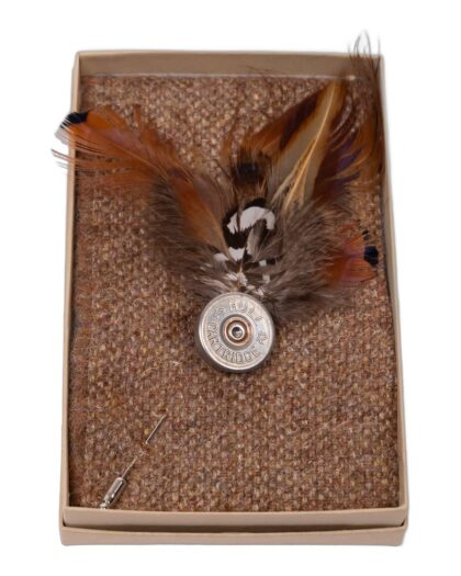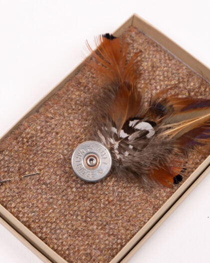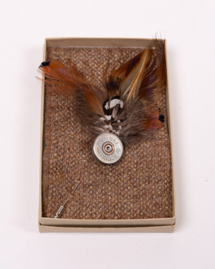 This brand new lapel pin from Fine Feathers features a recycled shotgun cartridge attached to decorative feathers. The perfect gift for the shooting enthusiast, this stylish and quirky accessory is a great conversation starter. Adds rustic charm to any outfit and is perfect for accessorising shooting attire or formal wear. A unique addition to any country-inspired wardrobe.