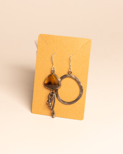 Enquire about Fire and Fae Montana Agate and Hammered Silver Hoop Asymmetric Earrings