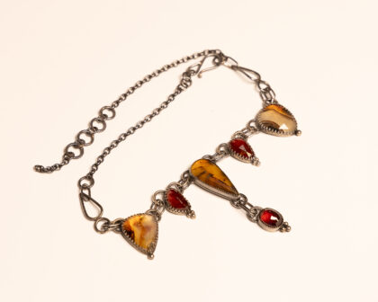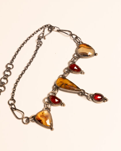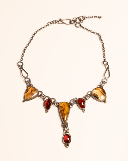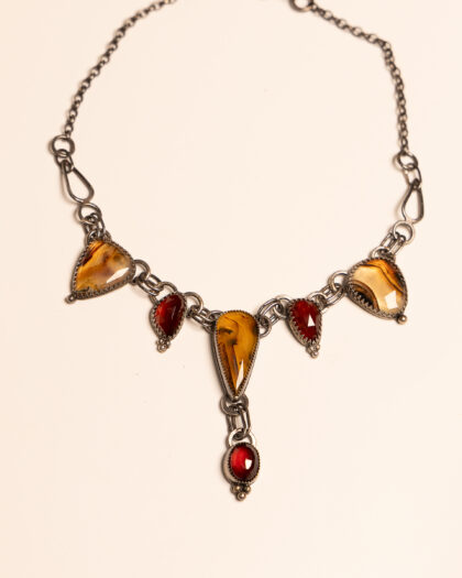 Beautiful Statement necklace with alternate stones of Montana Agate and Garnet. Stunning piece which would be lovely for a formal event.
