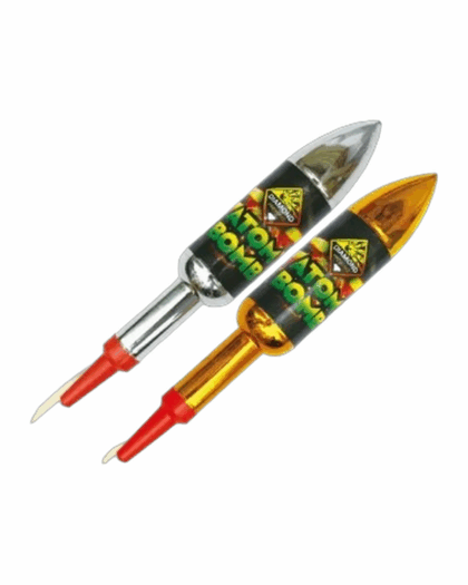 The Atom Bomb fireworks explode with such fury it's visible from outer space!ย Contains 2 different effects: king golden wave & strobe, blue & brocade crown. Also made using flash powder, the Atom Bomb will detonate louder and brighter than any rocket!