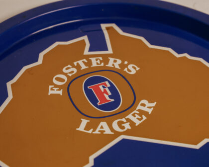 A metal bar tray advertising Foster's Lager - "The Amber Nectar".