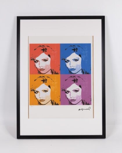 Explore the iconic artistry of Andy Warhol with this authentic Blondie Lithograph print featuring Debbie Harry. Expertly framed and ready to hang, this piece is a must-have for art enthusiasts and collectors. Includes a certificate of authenticity.