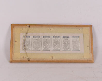 Framed collection of vintage cigarette cards titled 'Aircraft First World War'. The set features six cards showcasing different aircraft of the First World War. The cards are mounted on a dark green background and framed in a simple brown wooden frame. Each card features a colour illustration of an aircraft along with its name and a brief description. The backs of the cards, visible in one of the images, provide further details. These cards are a glimpse into the aviation technology of the early 20th century and would be a great decorative item for a study, living room, or office.