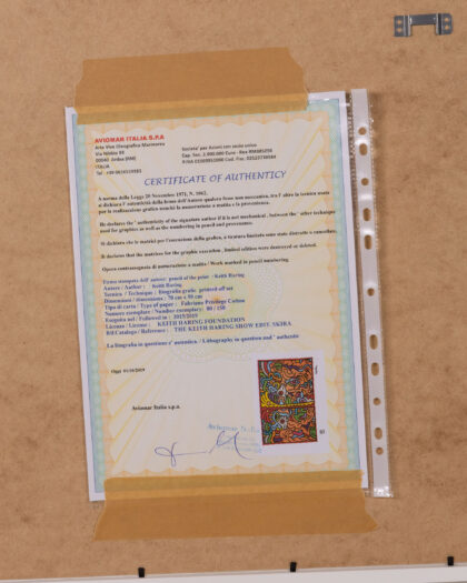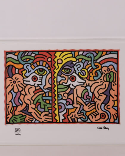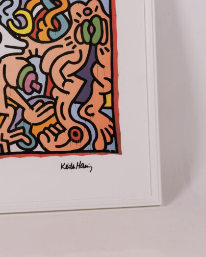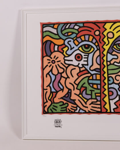 Framed Keith Haring Lithograph, numbered 80/150, vivid colours and abstract forms. Includes a certificate of authenticity. Ready to hang.