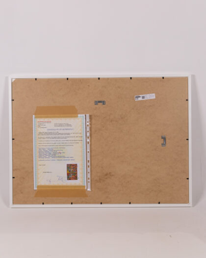 This framed print features a vibrant and captivating artwork in the unmistakable style of Keith Haring. The artwork is printed on high-quality paper and professionally framed with a clean, white frame, enhancing the bold colours and dynamic lines. The artwork features a playful and abstract composition with bold outlines and figures typical of Haring's work, making it a standout piece for any modern space. The print is numbered by The Keith Haring Foundation 80/150 and comes with certificate of authenticity. The print is in excellent condition and ready to hang. Bring iconic pop art into your home with this genuine Keith Haring print.