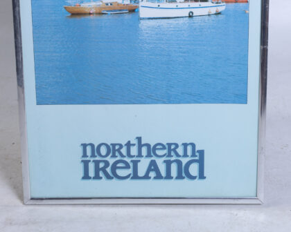 Framed original poster of a Northern Ireland harbour scene with silver-toned metal frame. Ideal decor for home or office. Great gift idea!