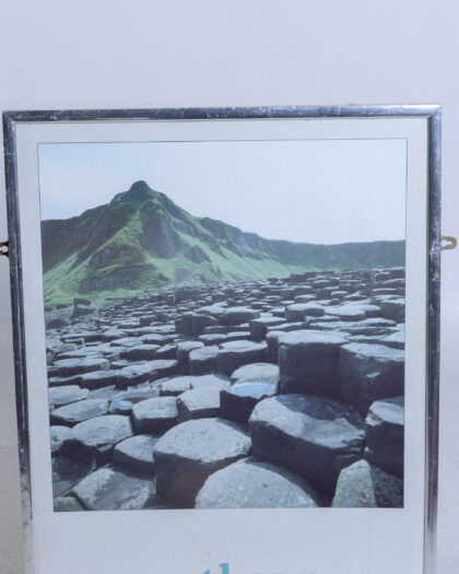 Framed original poster eaturing the Giant’s Causeway, Northern Ireland. Silver frame. Ideal for bringing a touch of nature to your home decor.