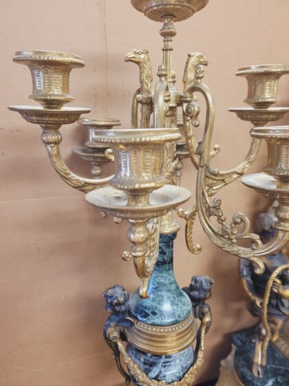 The lovely candelabras also in with the brass, marble & gold gilt hold six candles in each.