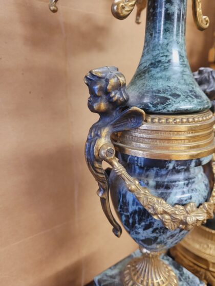 with two splendid candelabra garnitures both surrounded by cherubs.