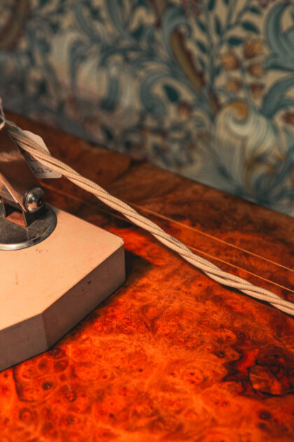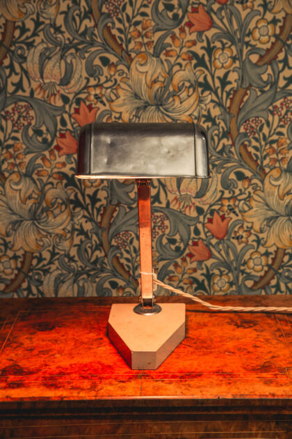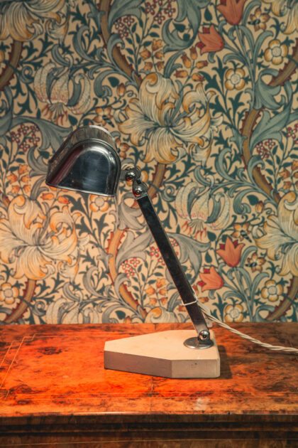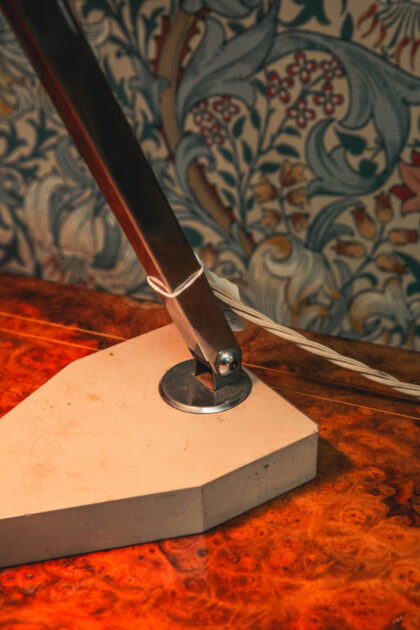 French Art Deco minimalist desk lamp on a heavy pink marble base typical for that era. Rewired and PAT-tested on 6/12/22 by our instore electrician.
