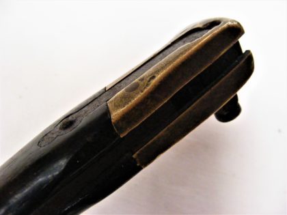 Appears to have been doctored to make fit a different rifle than intended; it was discovered with a rifle marked UPG and UVF, so it is likely that it was of a consignment of the Ulster Gun-running of April 1914