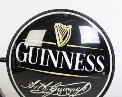 Vintage Guinness pub sign with harp logo and wall mount. A classic piece of breweriana for Guinness collectors. Good condition. Perfect for a pub or home bar.