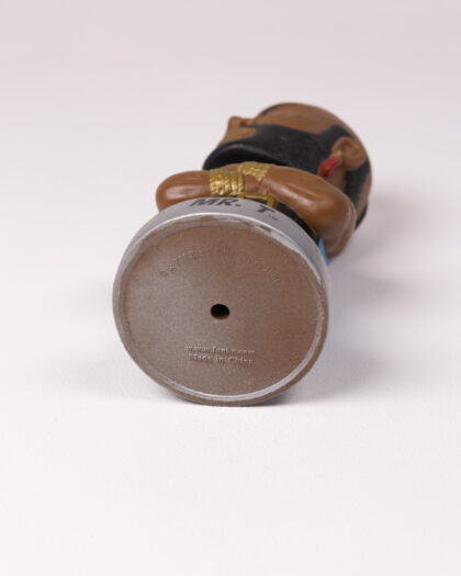 Add a touch of nostalgia to your collection with this Mr. T Bobblehead. This Funko bobblehead features the iconic character Mr. T with his signature gold chains and denim outfit. The bobblehead is in good condition, though there may be slight wear. It features Mr. T posed with his arms crossed in a confident manner. Made from durable plastic, this bobblehead will stand the test of time. Perfect for fans of the A-Team or collectors of pop culture memorabilia. A great addition to any shelf or desk.