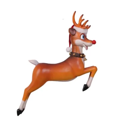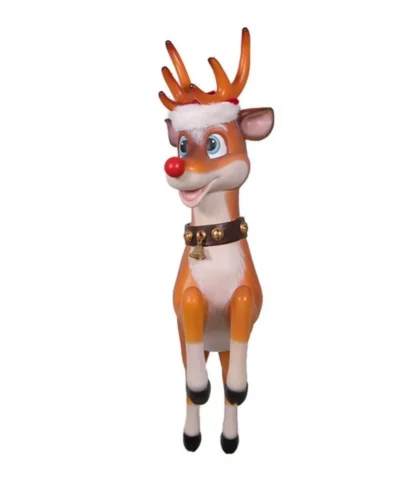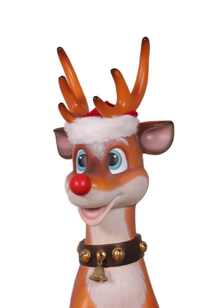 This life-size reindeer has a comic facial expression that kids love when visiting Santa during Christmas, providing a comical twist that’s sure to get a second look from passers by.