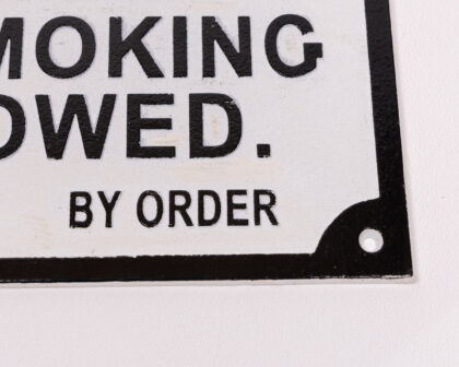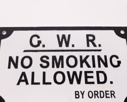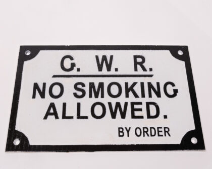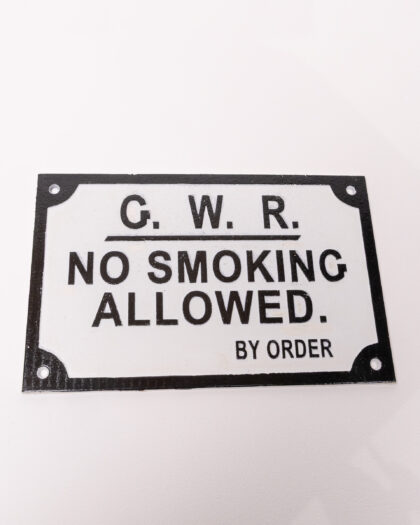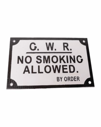 The Great Western Railway started operating between Bristol and London in 1838. Thirty years later, in 1868, a parliamentary order resulted in the trains starting to offer smoke-free carriages. This cast iron railway sign is a nod to this interesting piece of history, as the first no-smoking signs that started to appear on carriages and platforms. The sign itself is made from durable cast iron and is finished with a handpainted vintage effect - with black raised lettering on a white background. Pre-drilled holes make it easy to hang on a wall of your choice.