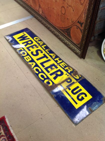 Gallaher "wrestler" tobacco plug metal sign