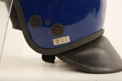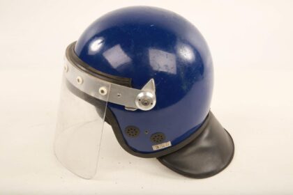 A late 20th century Garda Siochana Riot Squad helmet; complete with visor and chin strap