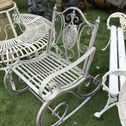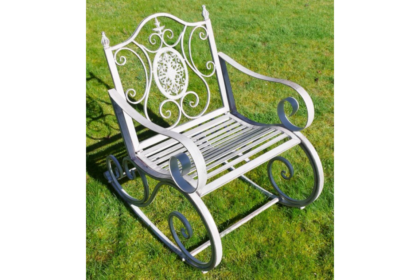 All metal rocking chair, ideal for snoozing in your garden. The chair features a scrolled design and would be a stunning addition to your garden or outside entertainment area.