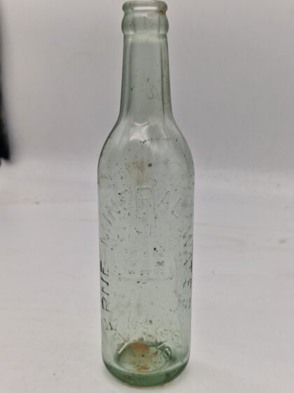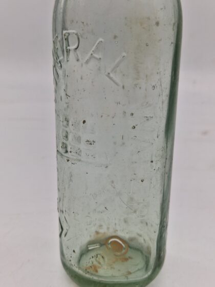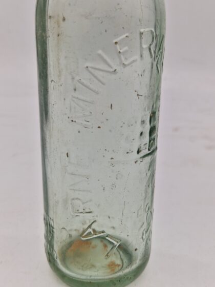 A clear glass bottle for Larne Mineral Water Co.