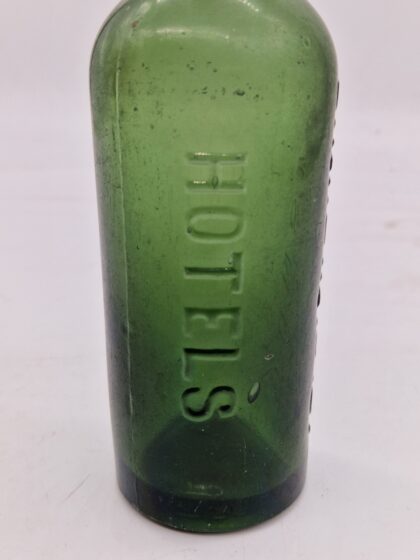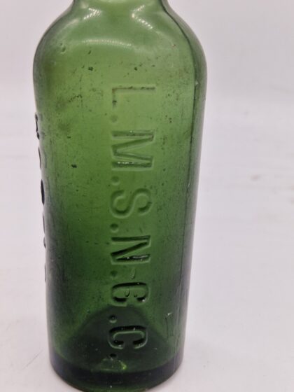 A 1920s dark green glass bottle for The London Midland Scotland Northern Counties Committee Hotels Railway Company.